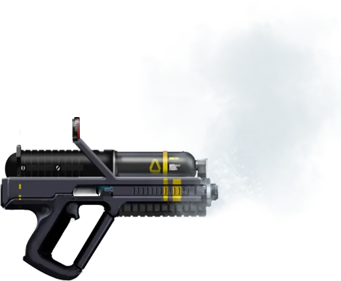 Zero Pistol Zero pistols have a weighted grip to balance their unusually heavy barrels. A cylindrical canister over the barrel contains and directs the coolants.Cryo WeaponsCryo weapons generate blasts of supercooled gas that can damage or incapacitate a target. The gas is kept within a charged cryochamber attached to the weapon. While primitive models simply sprayed these freezing chemicals like a flamethrower, modern models use a containment beam to deliver deadly frozen particles to targets at impressive ranges. Most cryo weapons automatically replenish their reservoirs of reactive chemicals by drawing and processing various gases from the atmosphere, needing only batteries to maintain their ammunition supply.